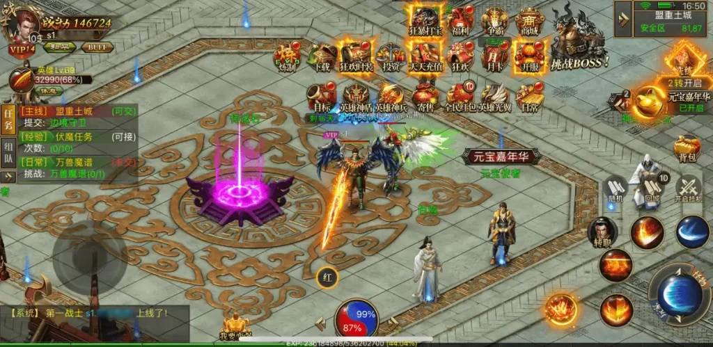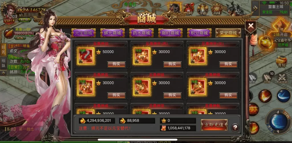 3:初始化每角色送 1000w 元宝,满级 vip14